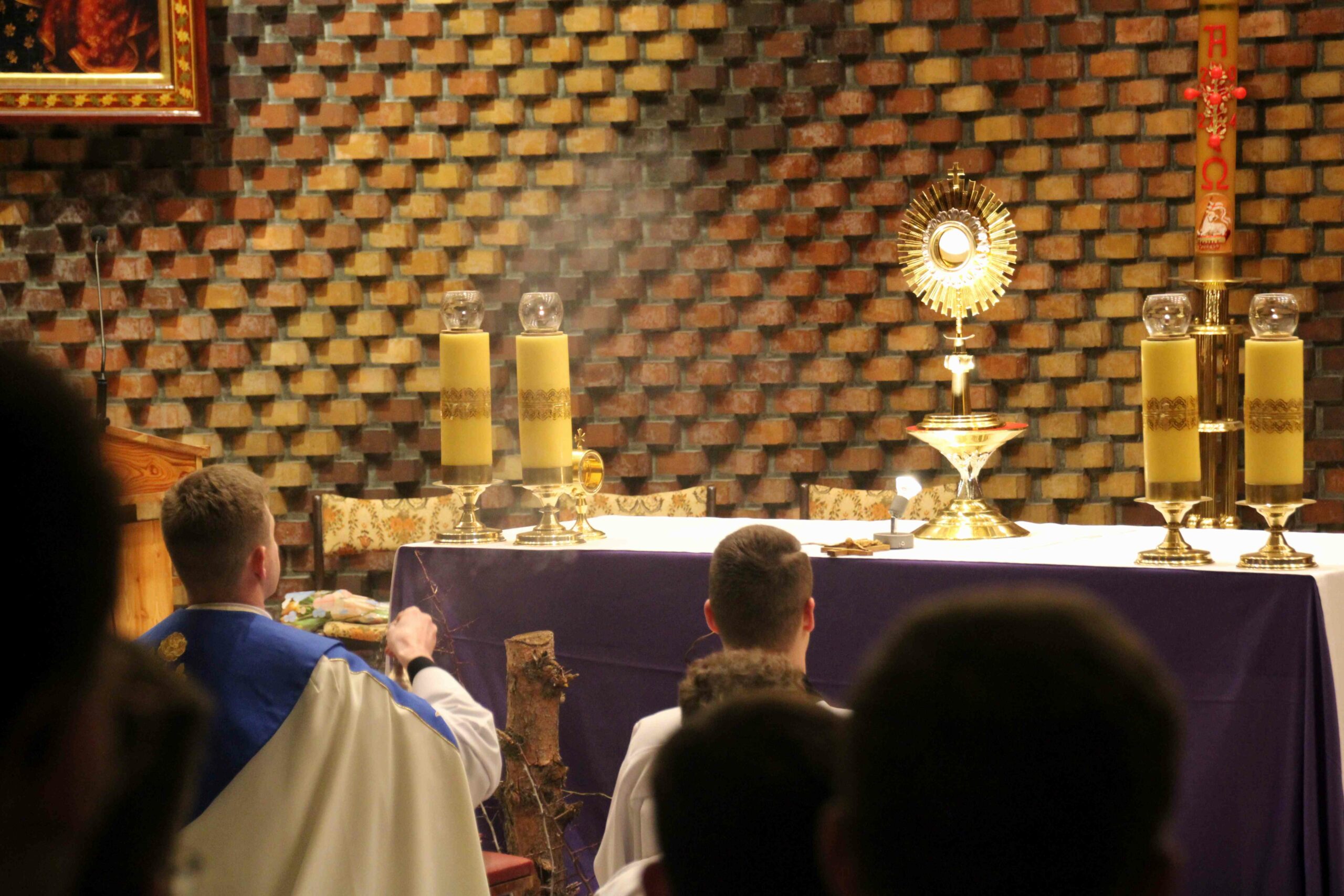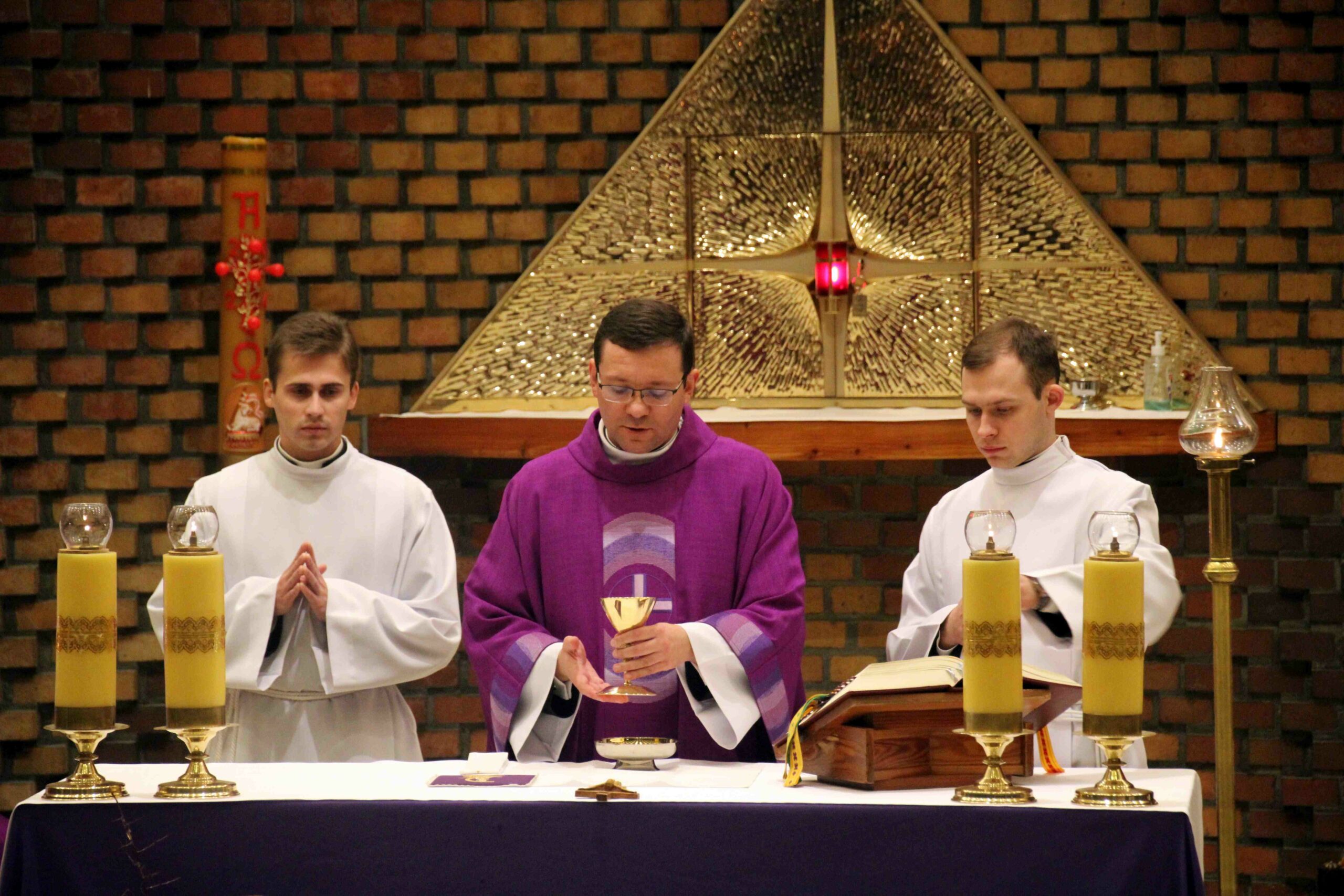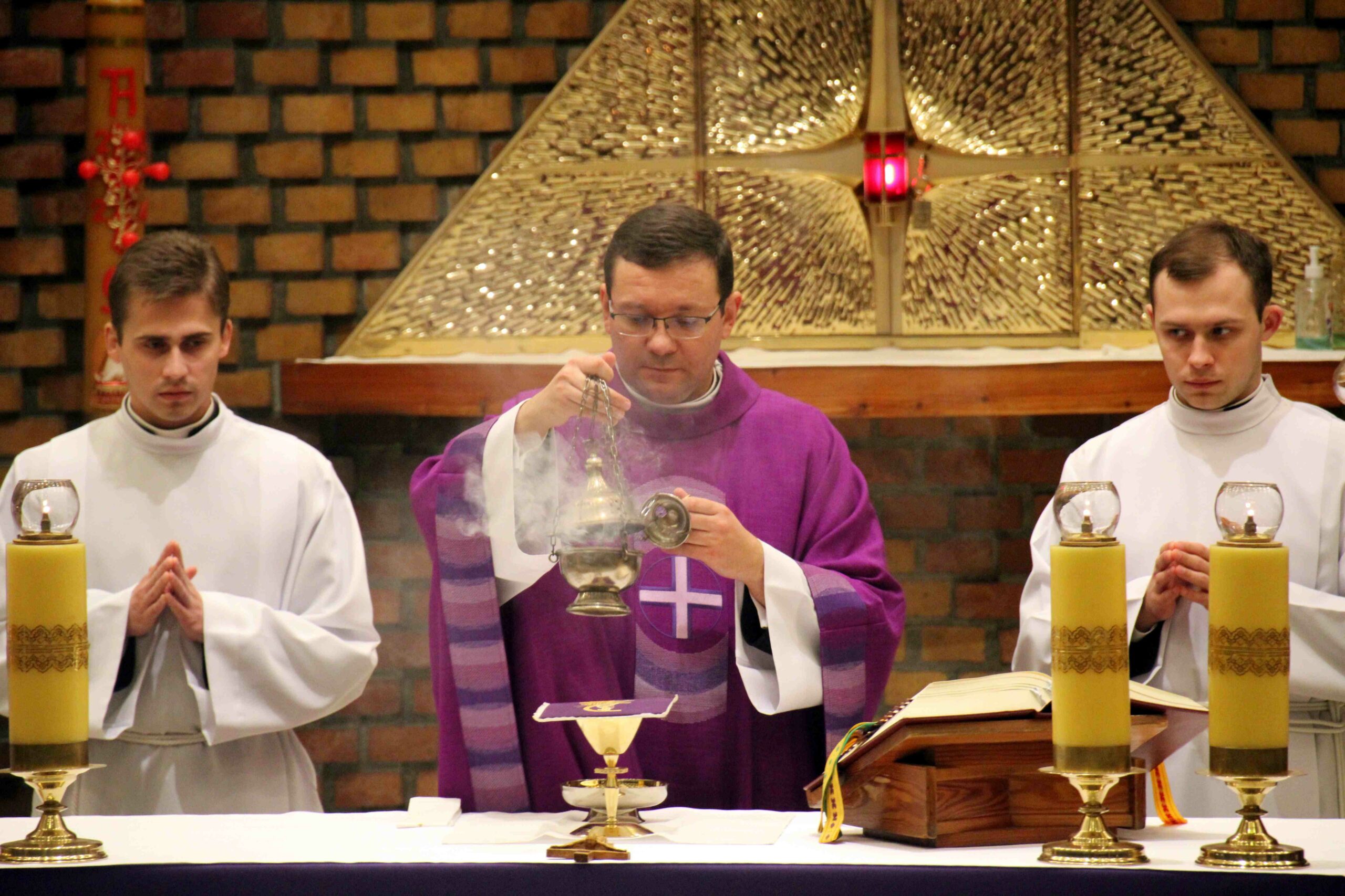 Przed Mszą wspólnie modliliśmy się różańcem, który prowadził ksiądz prefekt wraz z alumnami. Zgromadzeniu eucharystycznemu przewodniczył ksiądz rektor Jan Frąckowiak, a homilię wygłosił ksiądz prefekt Paweł Białczyk. Na samym początku powitał nas ksiądz proboszcz Krzysztof Różański, który przez wiele lat posługiwał w naszym Seminarium jako prefekt.