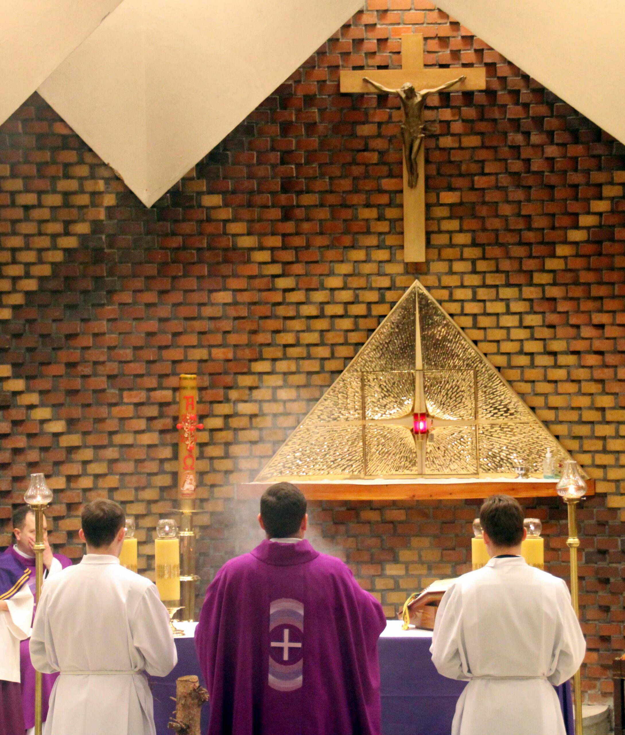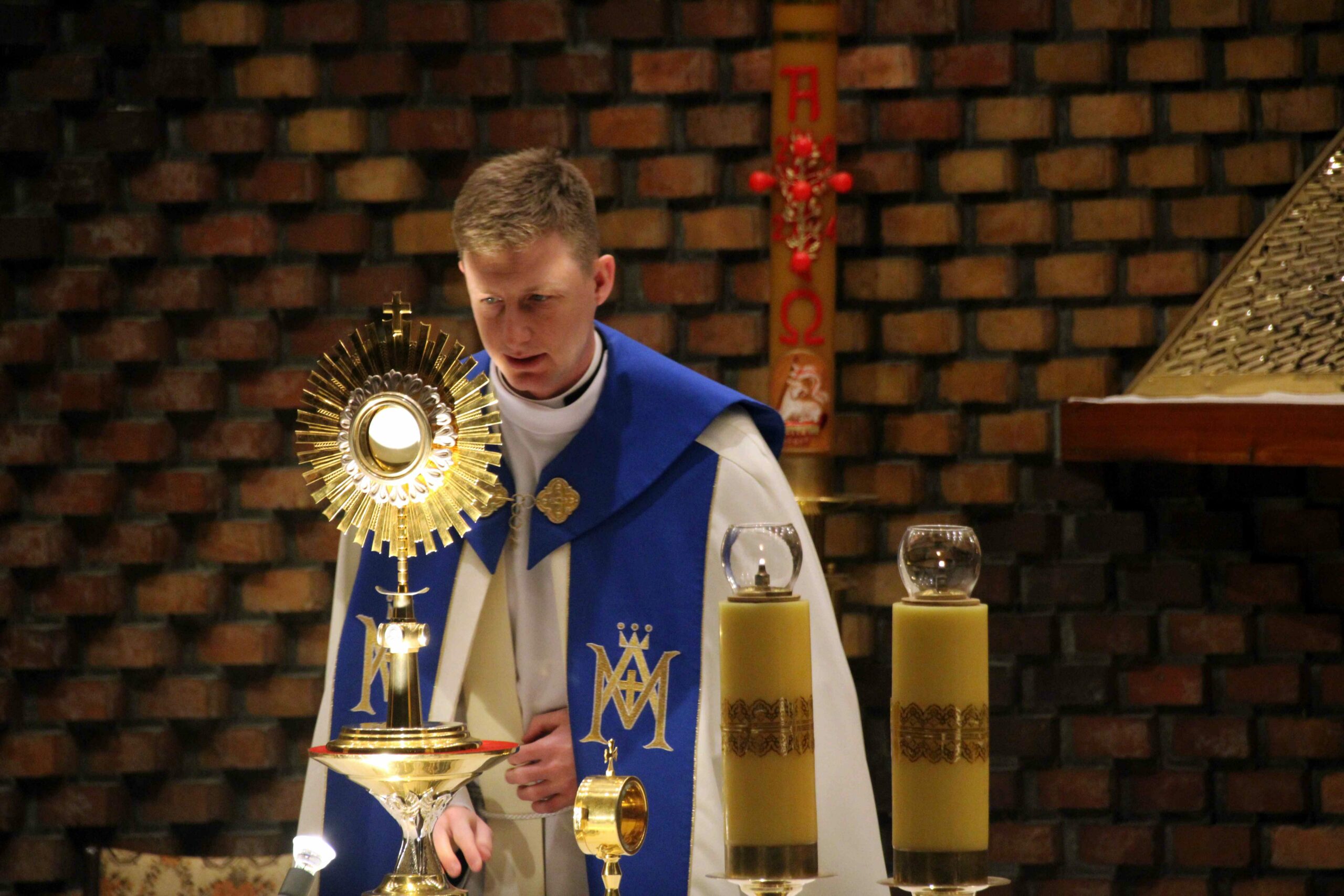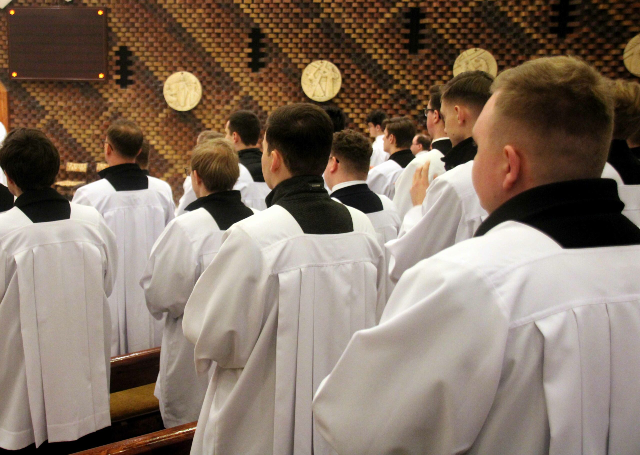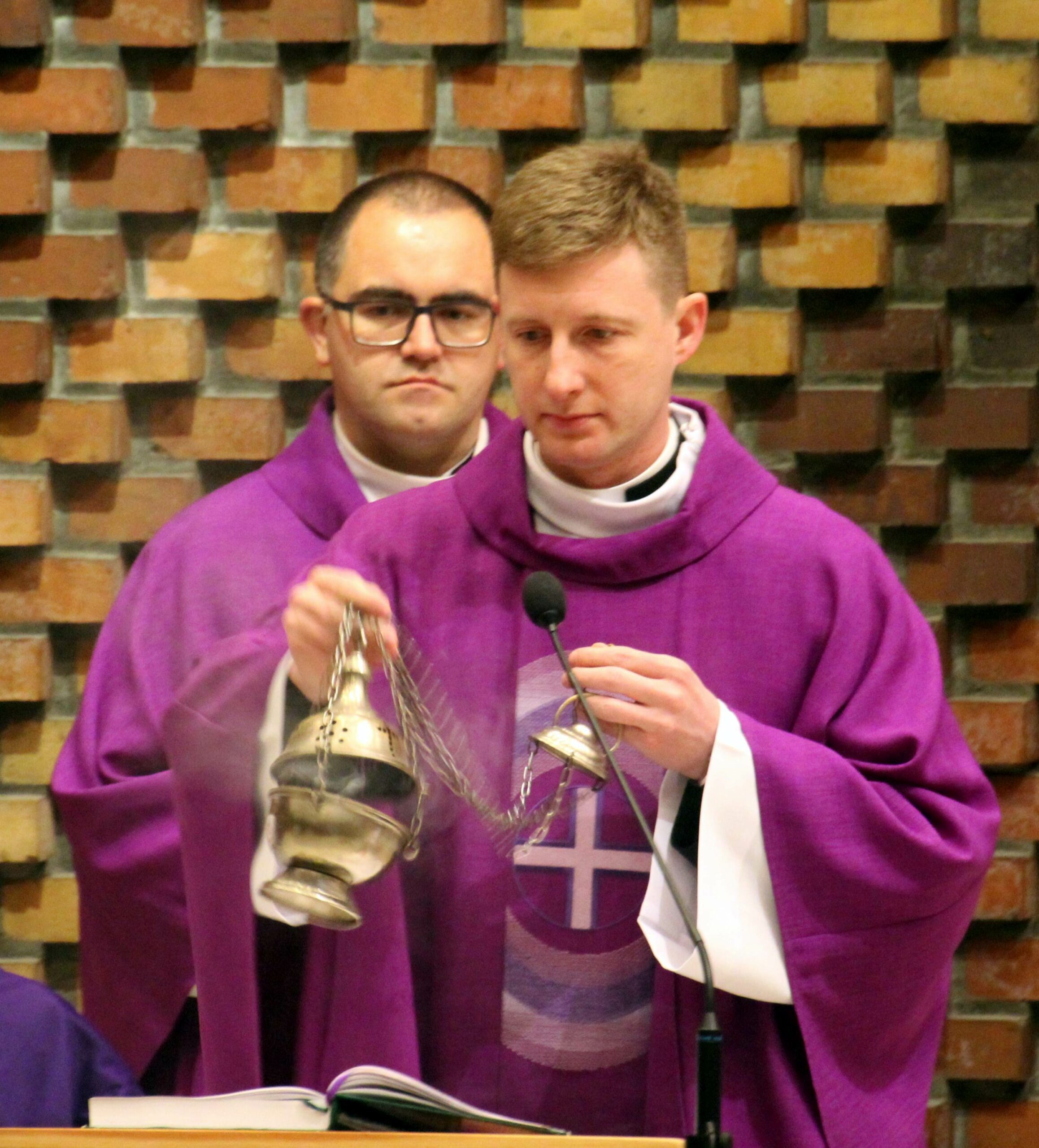 Przed Mszą wspólnie modliliśmy się różańcem, który prowadził ksiądz prefekt wraz z alumnami. Zgromadzeniu eucharystycznemu przewodniczył ksiądz rektor Jan Frąckowiak, a homilię wygłosił ksiądz prefekt Paweł Białczyk. Na samym początku powitał nas ksiądz proboszcz Krzysztof Różański, który przez wiele lat posługiwał w naszym Seminarium jako prefekt.