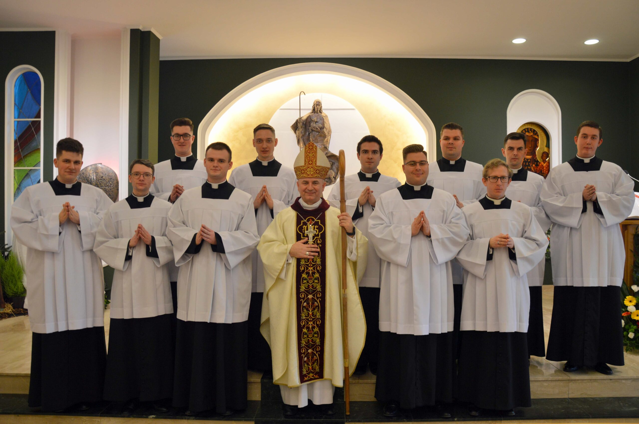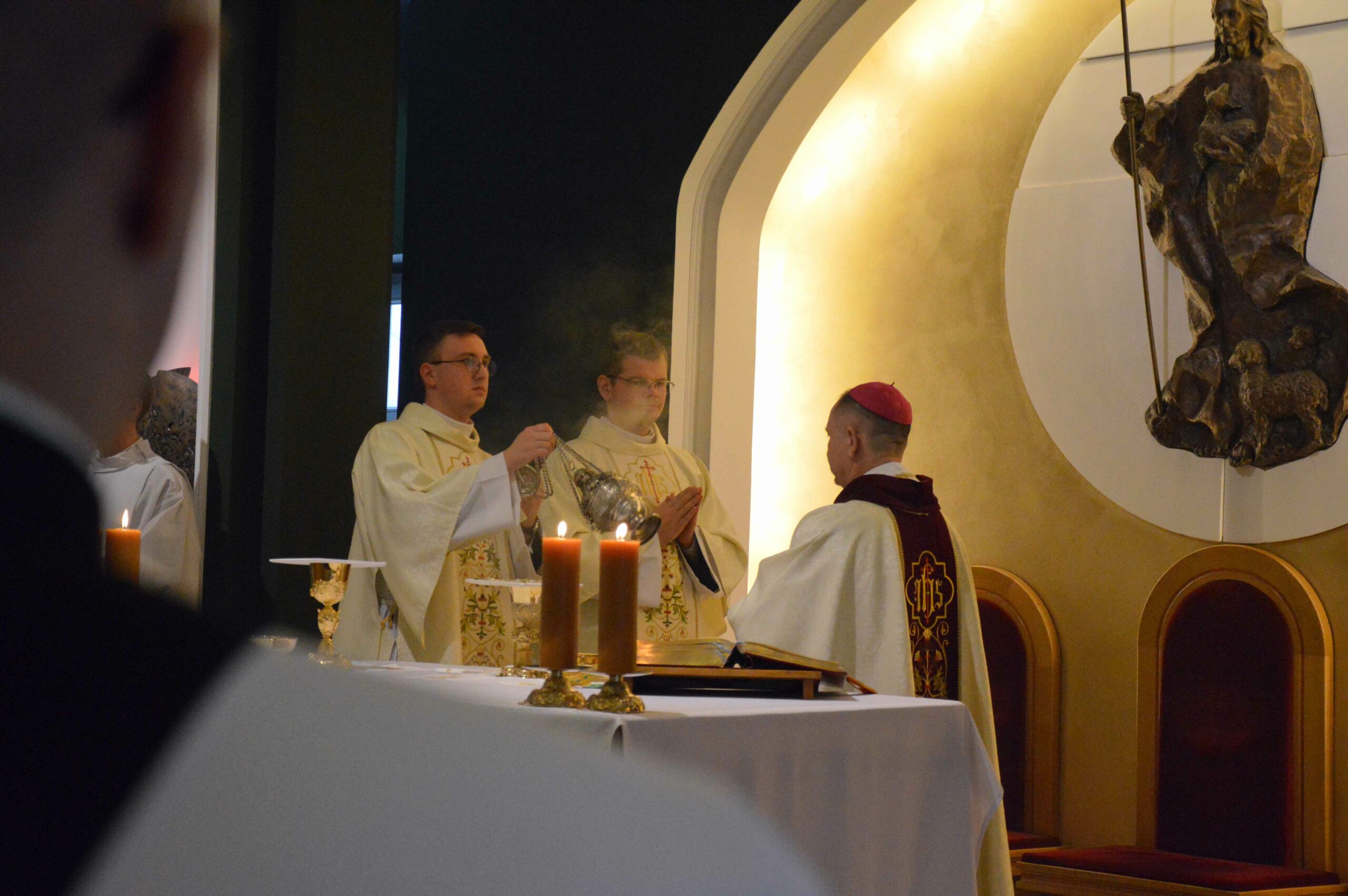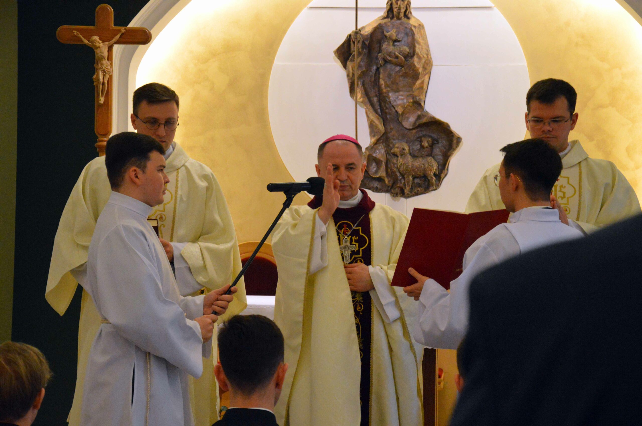 Uroczystej Eucharystii z obrzędem ustanowienia jedenastu nowych lektorów w seminaryjnej kaplicy pw. Chrystusa Dobrego Pasterza przewodniczył biskup pomocniczy gnieźnieński Radowsław Orchowicz. Koncelebrowali księża przełożeni oraz księża z parafii ustanawianych lektorów, a śpiewem towarzyszyła seminaryjna schola „Inclina aurem” pod batutą księdza profesora Mariusza Białkowskiego. W swojej homilii biskup Radosław zachęcał, aby w centrum naszego życia zawsze był Jezus – wcielone Słowo. Przypominał też podstawowe zadanie lektora w kontekście relacji do Słowa Bożego: „słuchać uważnie, rozważać starannie, postępowaniem swoim poświadczać”.
