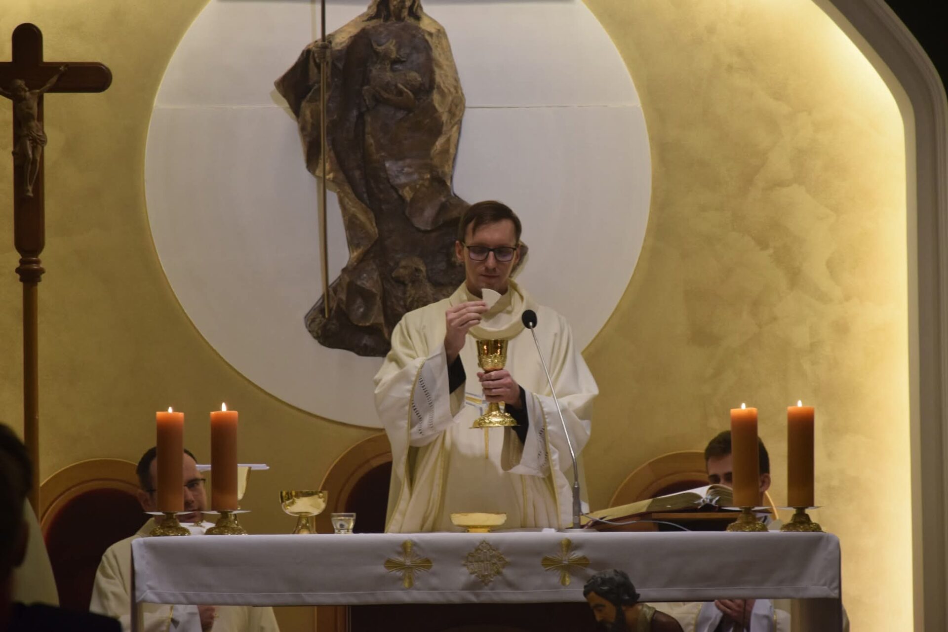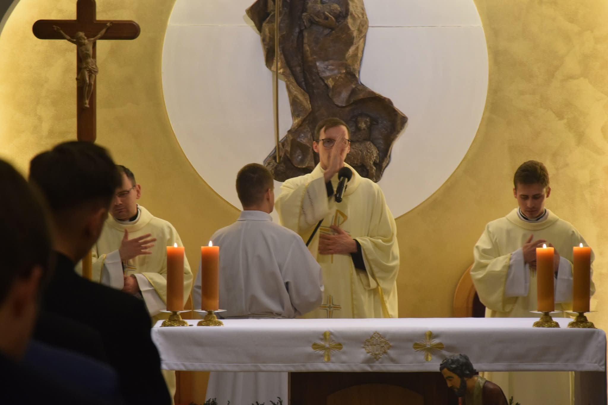 Naszym czwartkowym gościem w tym tygodniu był ks. Mateusz Kołodziejski. W trakcie homilii podzielił się z nami swoimi przemyśleniami na temat swojej posługi kapłańskiej. Wspomniał o tym, że w jego życiu Pan Bóg działał głównie przez obowiązki i sytuacje, których nie chciał doświadczyć, a to właśnie one miały w trakcie jego posługi kapłańskiej największe znaczenie.